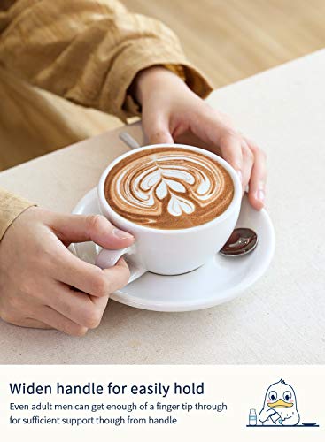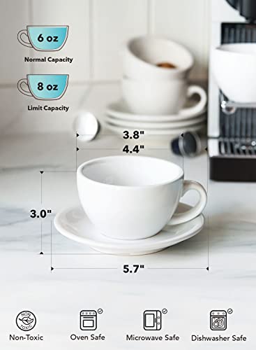 LE TAUCI - طقم أكواب الكابتشينو مع أطباق فناجين مصنوع من السيراميك للقهوة باللبن والقهوة المزدوجة واللاتيه وقهوة موكا والشاي لي تاوسي لون أبيض سعة 170 مل 4 قطع خزف حجري