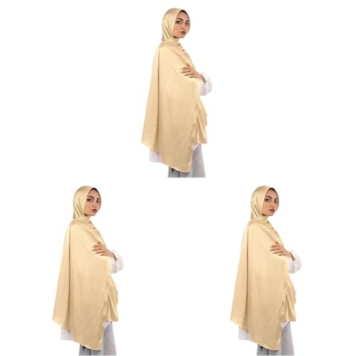 Le Voile - لي فوال سكارف حريري مجعد للنساء بلون بيج شوفان مقاس واحد (عبوة من 3 قطع)