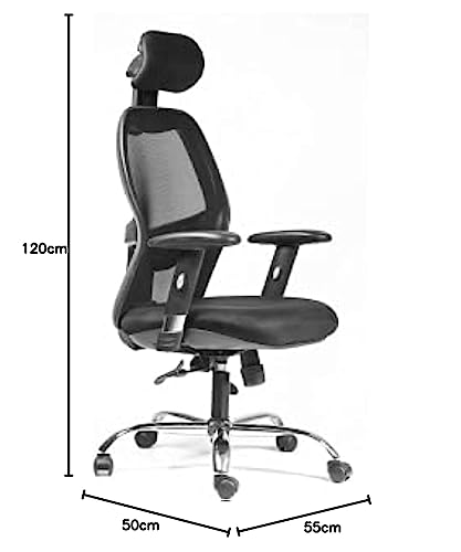 Leaders Furniture - كرسي من ليدرز للمفروشات للاستخدام المكتبي، يتميز بمسند رأس ومساند ذراع قابلة للتعديل وقاعدة من الفولاذ الكروم، مصنوع من القماش، باللون الأسود