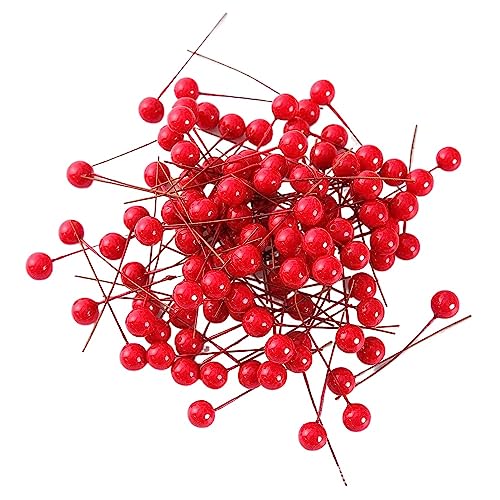 Leadigol - أكاليل التوت الأحمر الاصطناعية من ليديغول، أكاليل فاكهة بلاستيكية اصطناعية لتزيين شجرة الكريسماس، أكليل زهور يمكنك صنعه بنفسك، للاستخدام في حفلات الزفاف، 100 قطعة