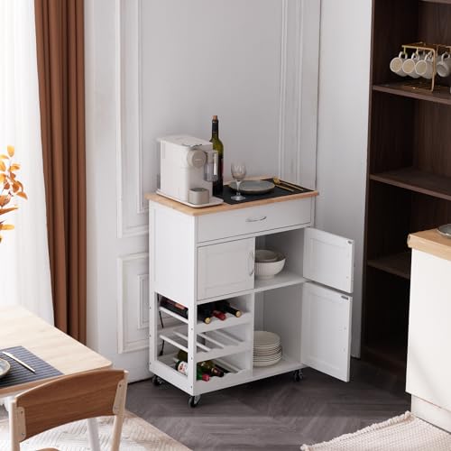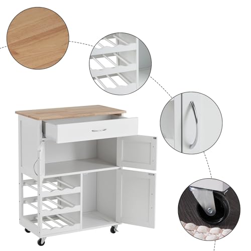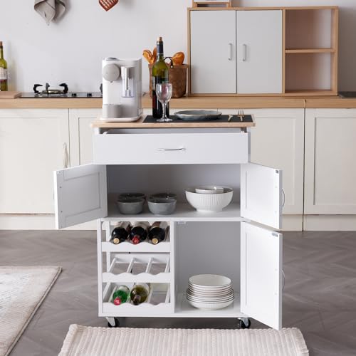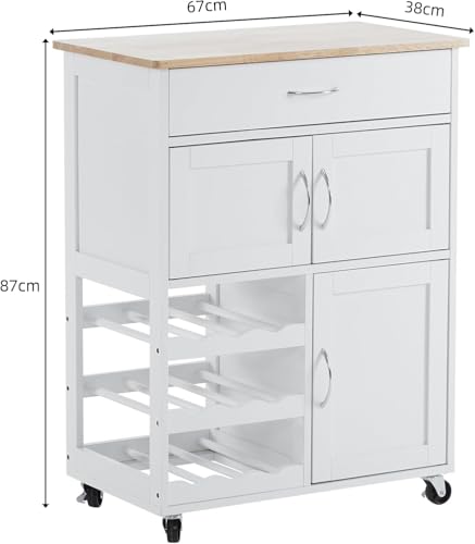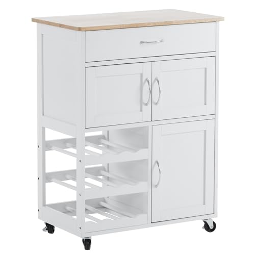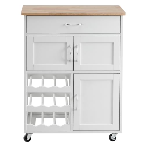LEADZM - عربة مطبخ بعجلات من ليدزم، عربة تقديم مع ادراج وارفف زجاجات، عربة مطبخ مع سطح عمل، عربة خزانة مطبخ مصنوعة من الخشب، 67 × 38 × 87 سم، ابيض