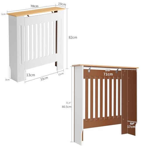 LEADZM - غطاء دفاية قابل للتعديل من خشب ام دي اف من ليدزم، لون أبيض، 78 × 19 × 81.5 سم