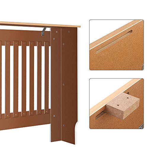 - قوي ومتين - غطاء الدفاية والدواليب هذا مصنوع من خشب ام دي اف عالي الجودة، ويتميز بلمسة نهائية مطفية ومقاوم للخدش ومتين للغاية وبالتالي يمكن استخدامه لفترة طويلة.