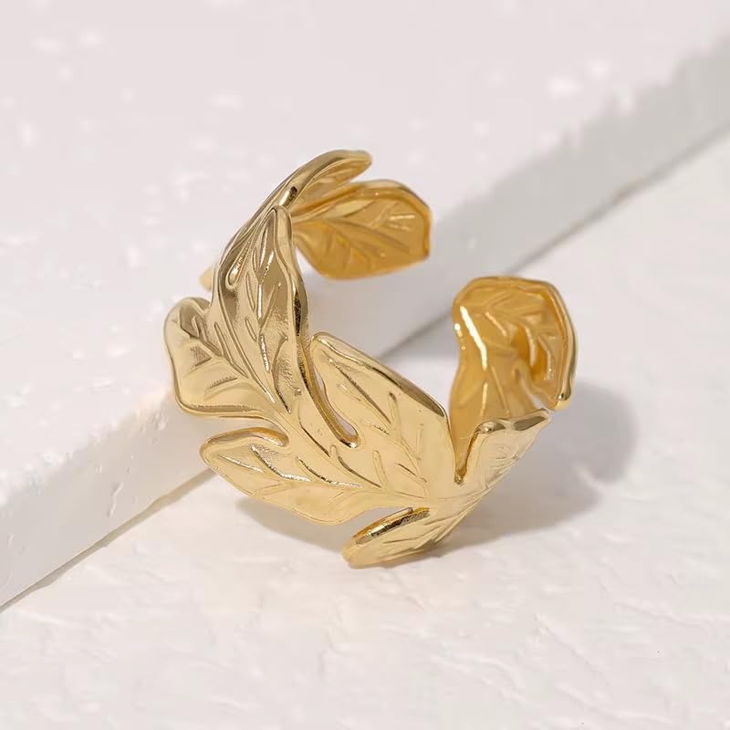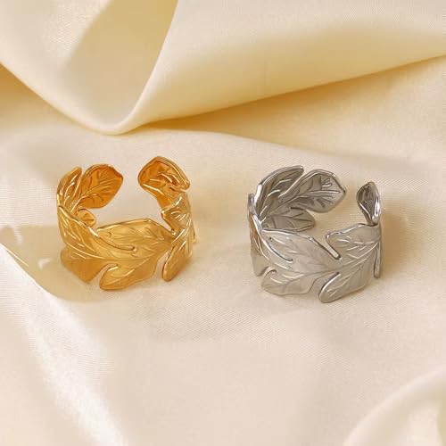 Generic - خاتم بتصميم مفتوح على شكل أوراق شجر للنساء، خاتم كلاسيكي بنمط قوطي قابل بحواف عريضة
