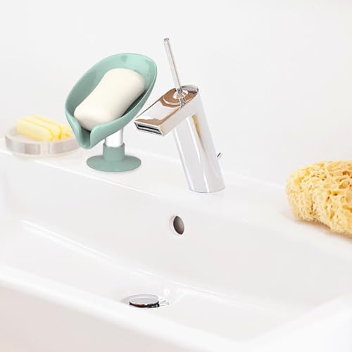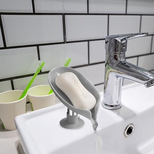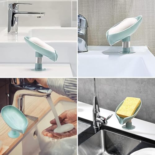YZDZSW - صبانات على شكل ورقة شجر، حامل صابون اليدين مع تصريف للاستحمام والمطبخ والحمام وسطح الطاولة (أزرق فاتح ورمادي)، 2 قطعة