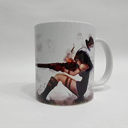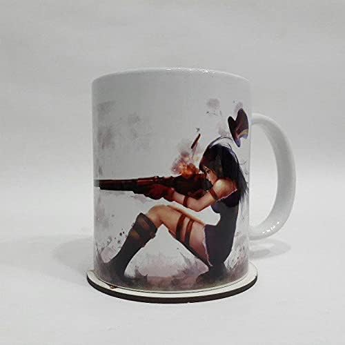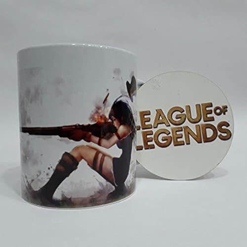 Generic - مج بورسلين مطبوع عليه ليج اوف ليجيند مع لوحة وقاعدة اكواب خشبية، أبيض