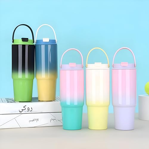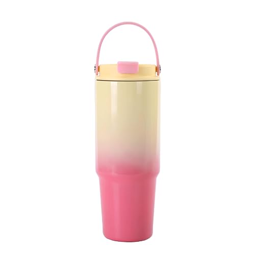 Generic - كوب مانع للتسرب، زجاجة من الفولاذ المقاوم للصدأ مع عزل مفرغ ومقبض مريح وشفاطة مدمجة، تحافظ على المشروبات ساخنة أو باردة لفترة أطول، مقاومة للتسرب وجاهزة للسفر، لون عشوائي سعة 900 مل