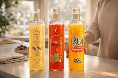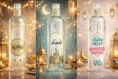 Generic - أكواب شرب مانعة للتسرب، مجموعة مبتكرة من الأكواب الاكريليك مزخرفة بالخط العربي مع غطاء سيليكون مانع للتسرب، قابلة لإعادة الاستخدام وشفافة ومصممة للاستخدام في المطبخ طوال رمضان، عبوة من 3 قطع