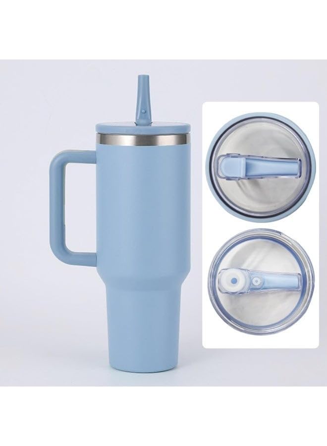 Generic - غطاء كوب مانع للتسرب مع فتحات شرب مزدوجة، تصميم سهل ومريح، لون ازرق فاتح، مناسب للمشروبات الساخنة والباردة
