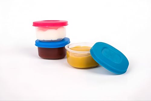 Generic - وجبات خفيفة مانعة للتسرب - مجموعة تخزين طعام محكمة الغلق وخالية من BPA مكونة من 4 قطع مع اغطية ملونة نابضة بالحياة مصممة لاغلاق الصلصات والغموس والوجبات الخفيفة بأمان أثناء تكديسها بدقة في الثلاجة.