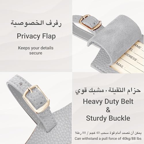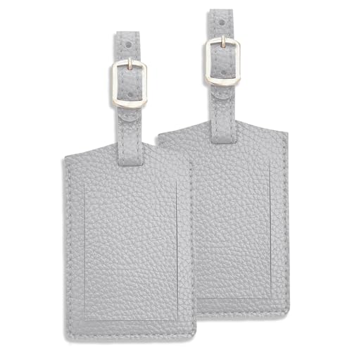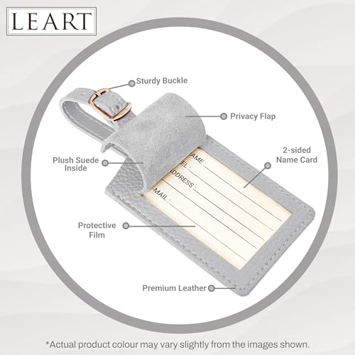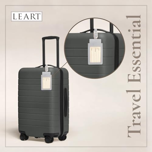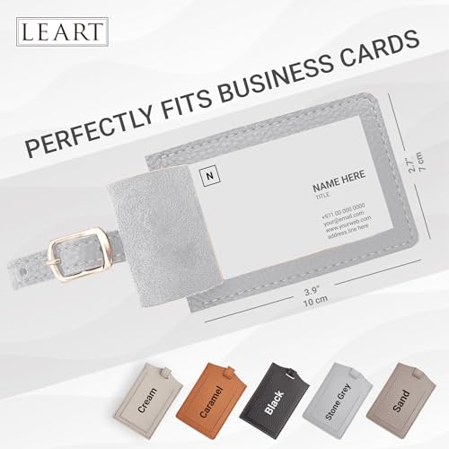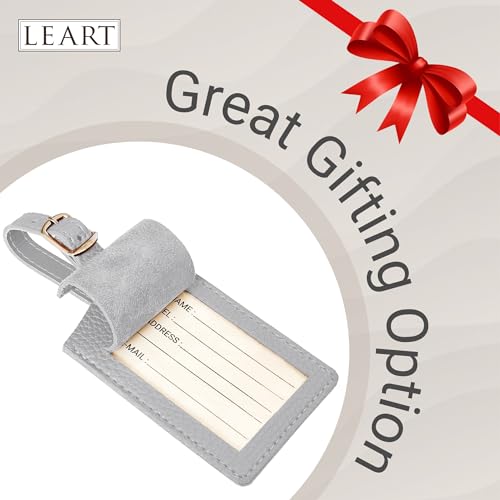 LEART - بطاقة تعريف أمتعة جلدية من لي آرت، علامات شنط السفر من الجلد (قطعتان، ستون جراي)