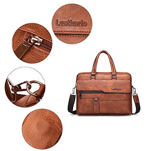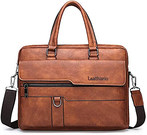 Leathario - شنطة ماسنجر من ليثاريو للرجال باللون البني مقاس متوسط