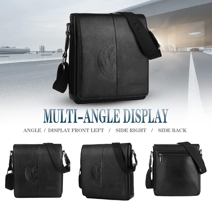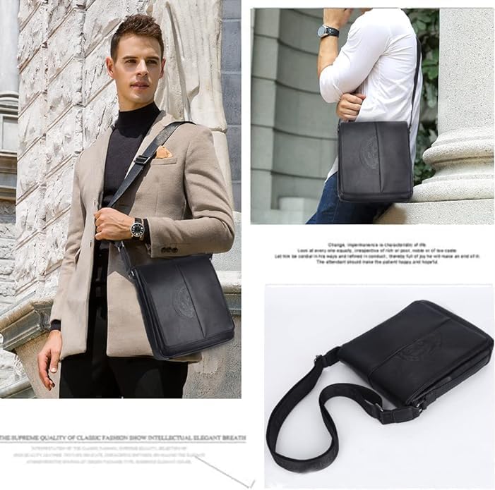 Generic - شنطة كتف صغيرة من الجلد الصناعي للرجال بسعة كبيرة لون اسود ليثاريو