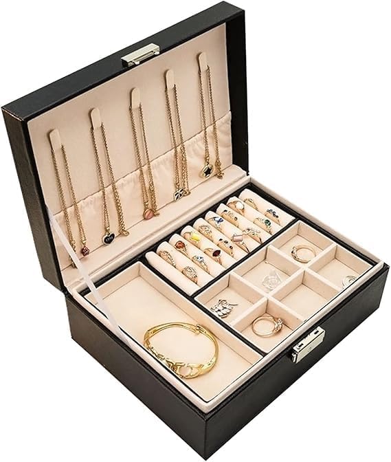 - ✅【تنظيم داخلي متقن】يتميز الداخل بتقسيمات ذكية تفصل بين القطع الصغيرة والكبيرة، مما يمنع الخدوش والتشابك ويحافظ على المجوهرات مرتبة وسهلة الوصول، مع ضمان ترتيب مثالي يضيف تجربة استخدام ممتعة ومرتبة يوميًا. 📦