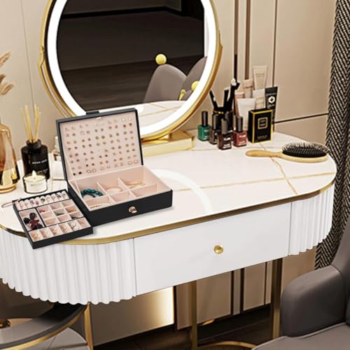- ✅【تصميم من دورين】تتميز علبة تنظيم الاكسسوارات بتصميم عملي من مستويين يسمح لك بفصل الخواتم والسلاسل والأساور والأقراط بشكل منظم، مما يسهل الوصول إلى كل قطعة بسرعة ويحافظ على المجوهرات مرتبة وخالية من التشابك مع إضافة لمسة أنيقة لديكور الغرفة. 💎