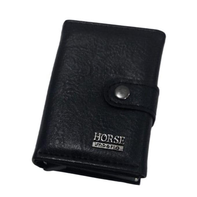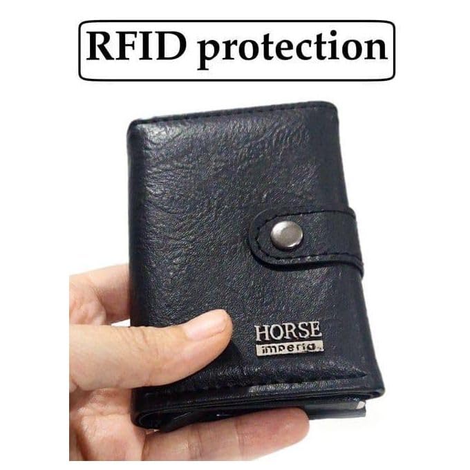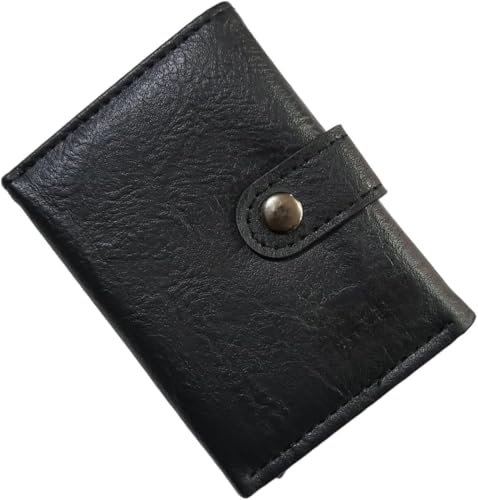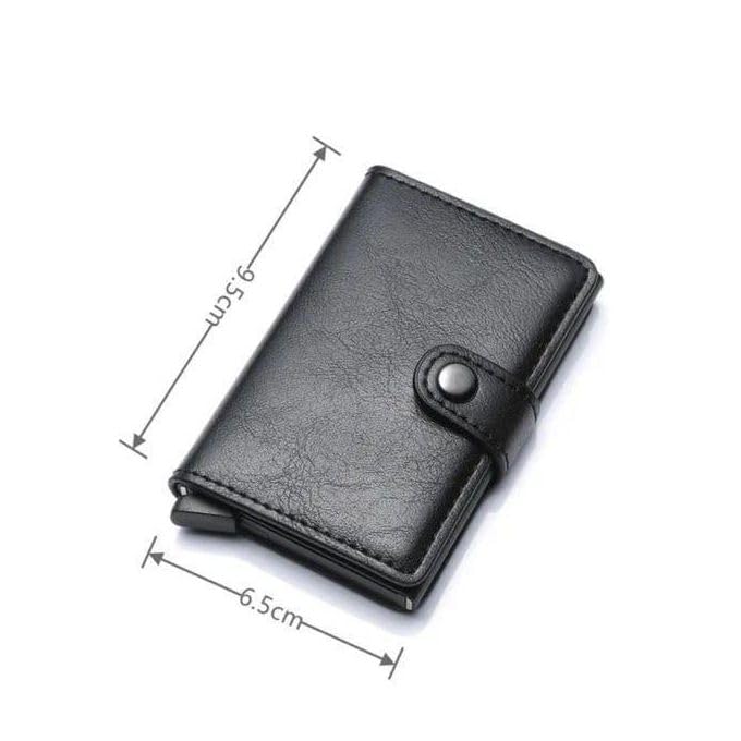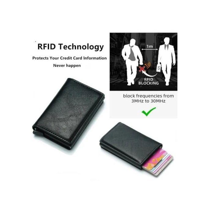 Generic - محفظة نقود وبطاقه جلدية مضادة للسرقة مزودة بحامل بطاقات معدني مع ميزة حماية البطاقات، صغيرة وسهلة الحمل (اسود)