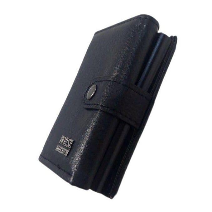 - تصميم عملي: محفظة جلدية أنيقة مع زر إغلاق معدني وتصميم نحيف يناسب الجيب