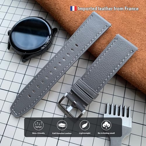 Paesteffe - سوار جلدي بديل لساعة هواوي جي تي 3 برو 46 ملم ووتش 4 برو ساعة التيميتجي 3، 2 (رمادي)، جلد، من باستيف، للجنسين - للبالغين.