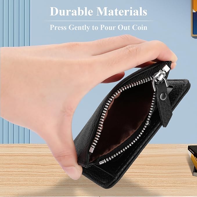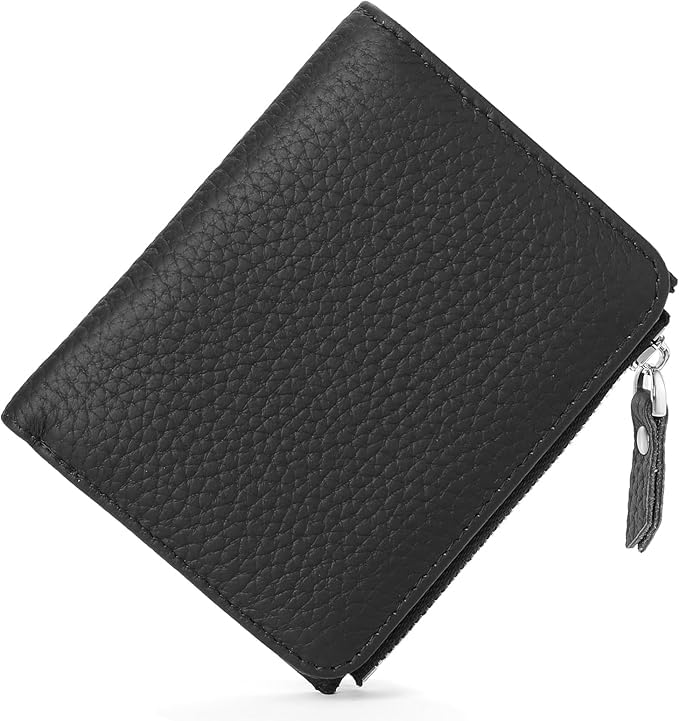 GOGO.EG - محفظة جلدية ثنائية الطيات، حامل بطاقات صغير مع سوستة، نسيج محبب ممتاز، تصميم نحيف (أسود)
