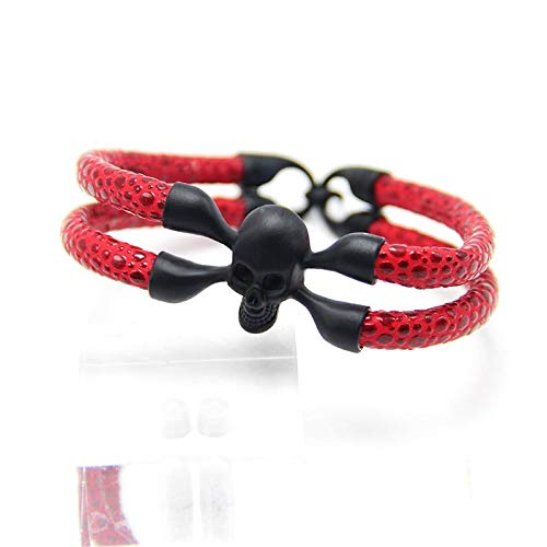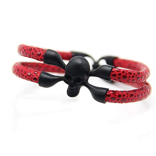 Other - اسوره جلد لون أحمر دورين بها شكل جمجمة أسود رقم الصنف 937 - 1، للجنسين