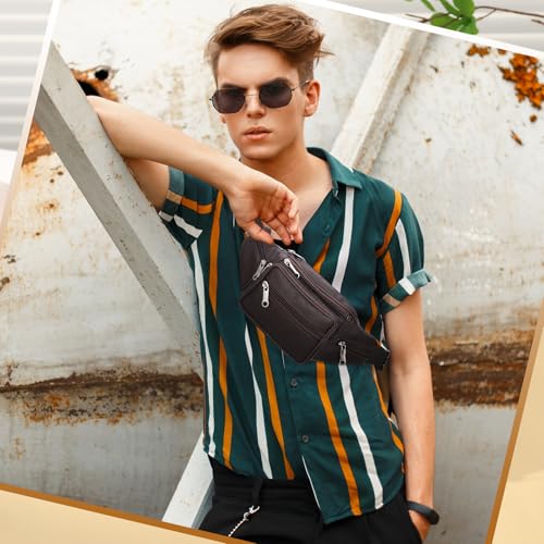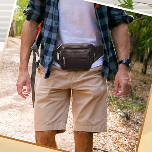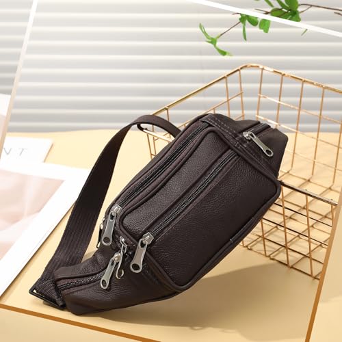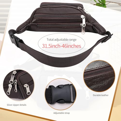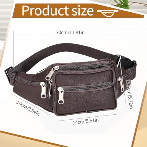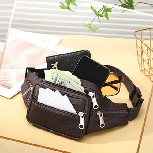 Meng Jiaran - شنطة جلد بحزام نقود للنساء والرجال، شنطة خصر قابلة للتعديل، حزام نقود للهاتف والمشي والسفر، لون بني