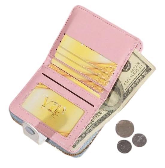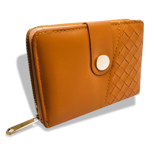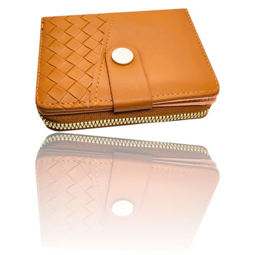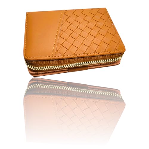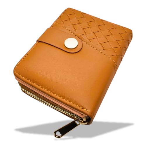 Generic - حامل بطاقات عمل ونقود من الجلد لبطاقات الائتمان سحاب صغير بتقنية تحديد الهوية بموجات الراديو محفظة جيب قابلة للطي العمل للنساء والفتيات بني 2 .