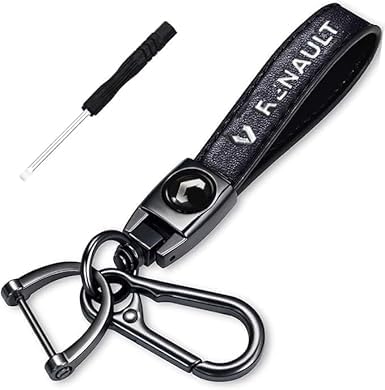 Generic - ميدالية وسلسلة مفاتيح سيارة من الجلد وحلقات معدن مناسبة لمفاتيح السيارة والدراجات النارية ومفاتيح العائلة - متوافقة مع رينو، أسود