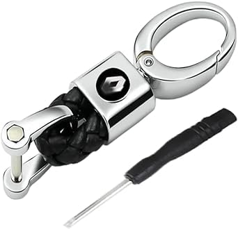 Generic - ميدالية وسلسلة مفاتيح سيارة من الجلد وحلقات معدن مناسبة لمفاتيح السيارة والدراجات ومفاتيح العائلة - مقاس صغير- متوافقة مع رينو أسود