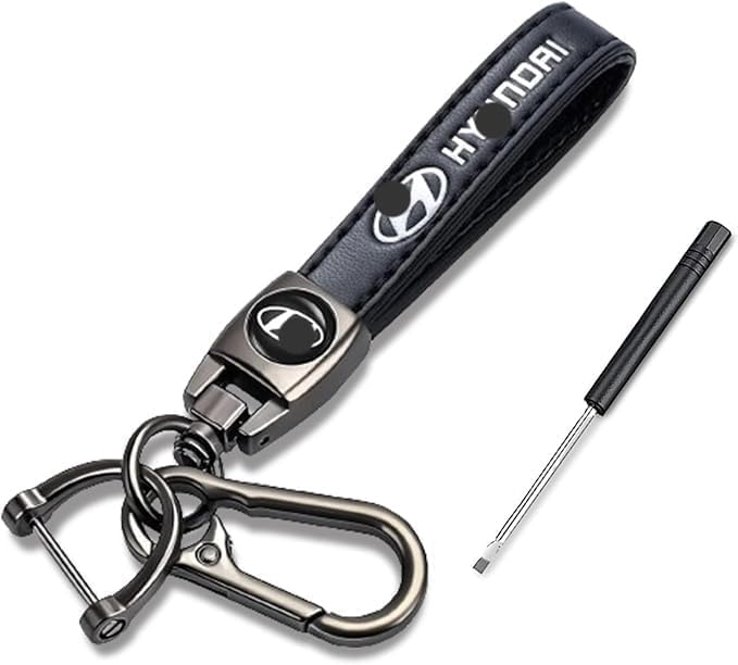Generic - ميدالية وسلسلة مفاتيح سيارة من الجلد وحلقات معدن مناسبة لمفاتيح السيارة والدراجات النارية ومفاتيح العائلة - متوافقة مع هيوندا؟؟ي، أسود