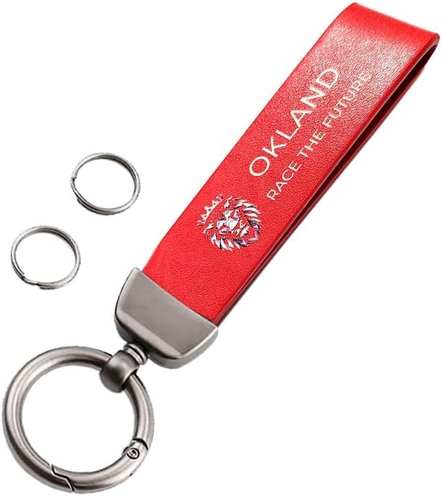 Generic - ميدالية وسلسلة مفاتيح سيارة من الجلد وحلقات معدن مناسبة لمفاتيح السيارة والدراجات النارية ومفاتيح العائلة - جلد احمر اوكلاند اسد
