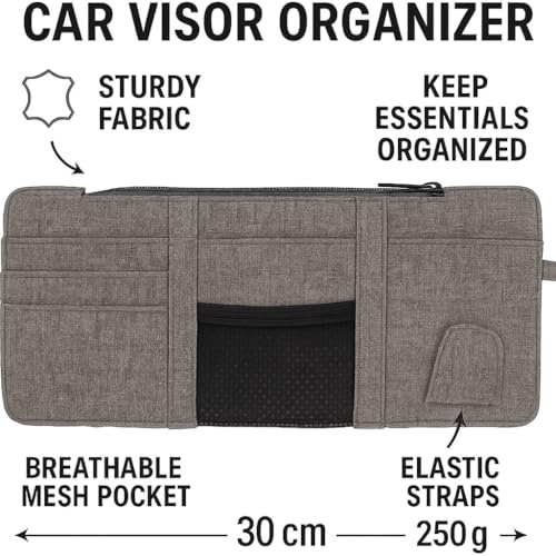 Generic - منظم تخزين للسيارة بتصميم عصري فاخر، باللون الرمادي، مصنوع من الجلد الصناعي، متعدد الوظائف مع مشبك مغناطيسي وقابل للتعديل