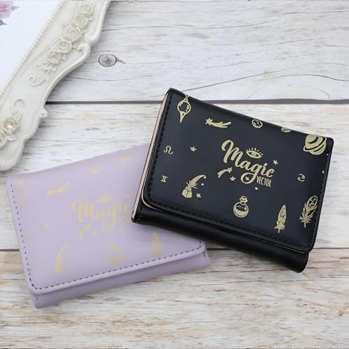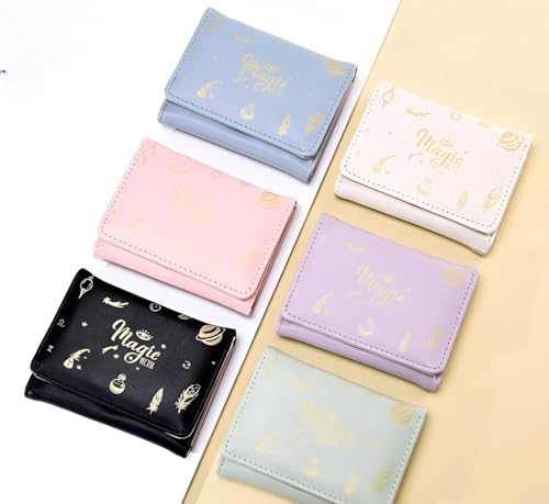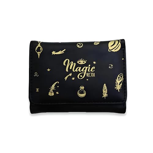 Generic - حامل بطاقات جلد - محفظة باستيل انيقة مع تفاصيل رقائق ذهبية، تصميم متعدد الجيوب لراحة المرأة واناقتها (اسود)
