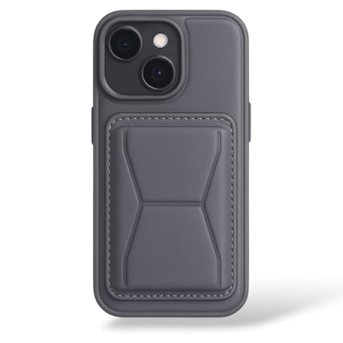 Generic - جراب جلد متوافق مع آيفون 15 من الجلد المقاوم للصدمات مع حامل مدمج من جلد البولي يوريثين لمظهر أنيق، قبضة مريحة (رمادي)