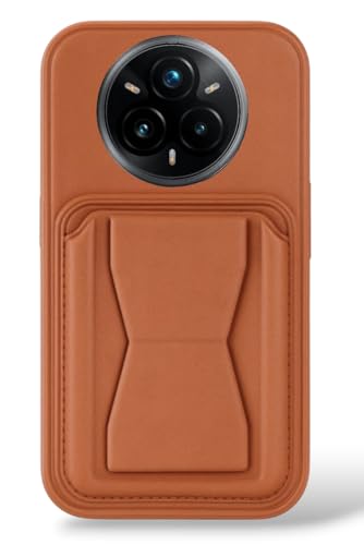 Generic - حافظة جلدية متوافقة مع موبايل ريلمي 14 برو بلس من الجلد المقاوم للصدمات مع حامل مدمج من جلد البولي يوريثين لمظهر انيق، قبضة مريحة (بني)