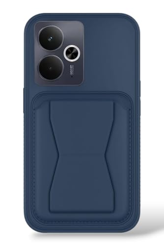 Generic - جراب حماية بظهر جلد مقاوم للصدمات مع حافظة بطاقات مدمجة وحامل مدمج من الجلد الصناعي لمظهر أنيق وملمس مريح متوافق مع موبايل ريلمي 14T و14 شبكة الجيل الخامس 5G، أزرق