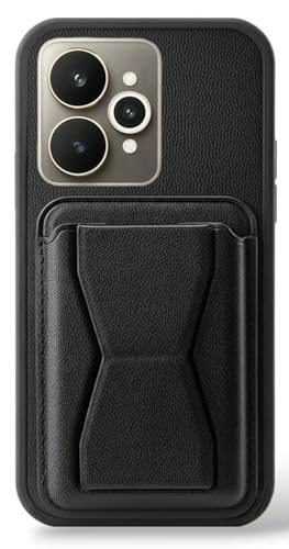 Generic - حافظة جلدية متوافقة مع ريلمي 15 / ريلمي 15 برو من الجلد المقاوم للصدمات مع حامل مدمج من جلد البولي يوريثين لمظهر انيق وقبضة مريحة (اسود)