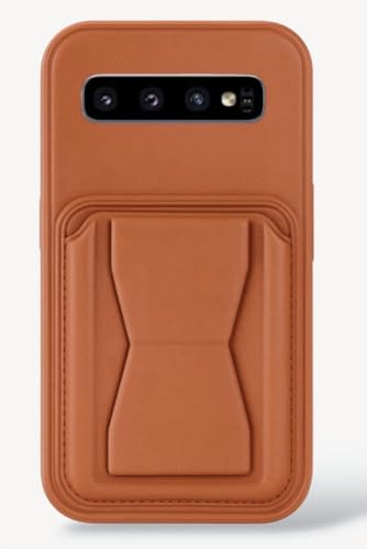 Generic - جراب حماية خلفي من الجلد مقاوم للصدمات مزود بحامل صغير وجيب للكروت من الجلد الصناعي متوافق مع موبايل سامسونج جالاكسي S10 شبكة الجيل الخامس 5G (بني)