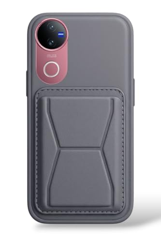 Generic - جراب جلد مقاوم للصدمات مزود بحامل تخزين الكروت مدمج من جلد صناعي لمظهر أنيق وقبضة مريحة متوافق مع موبايل فيفو V50 شبكة الجيل الخامس 5G (رمادي)