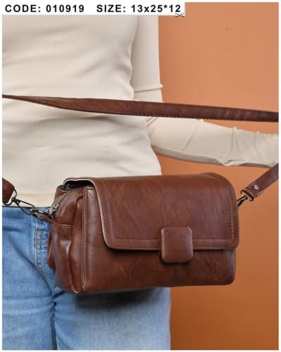 Generic - شنطة طويلة تمر بالجسم من الجلد، مقاس 13×25×12 سم، لون بني
