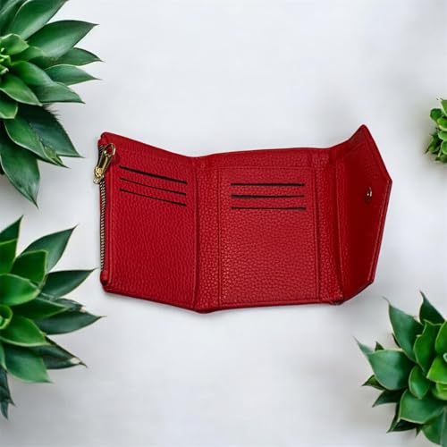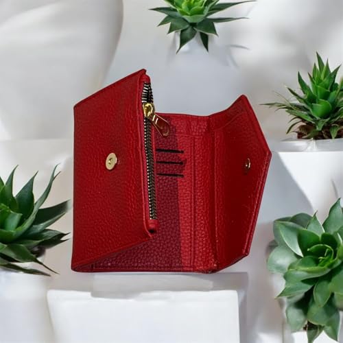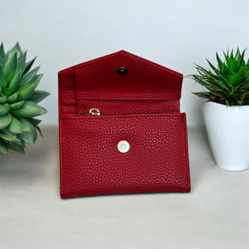 M A - محفظة من إم إيه مصنوعة من الجلد للنساء، بتصميم ظرف باللون الأحمر، مع فتحات متعددة للبطاقات وإغلاق مغناطيسي