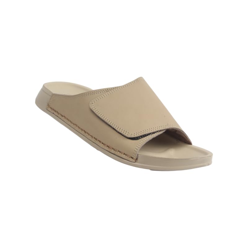 Generic - شبشب جلد مسطح للرجال 524، بيج، 45 EU