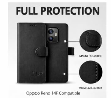 Generic - جراب جلد قابل للطي لموبايل اوبو رينو 14F - حماية كاملة من الامام والخلف - اغلاق مغناطيسي - مضاد للخدش (اسود)