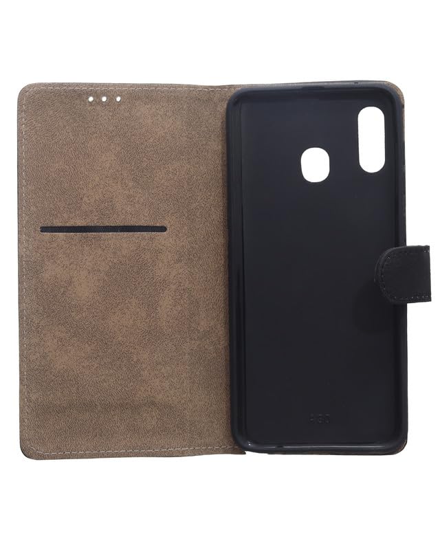 Generic - جراب حماية من الجلد قابل للطي لموبايل سامسونج جالاكسي A20 وA30 37329766، أسود