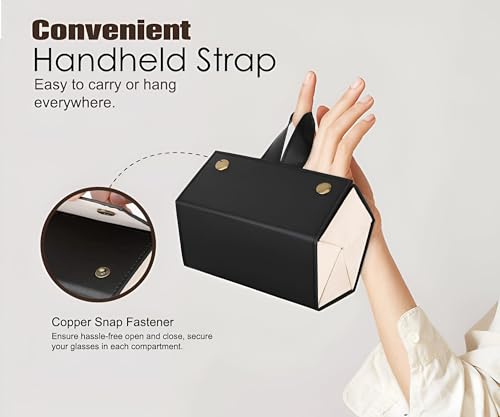 Generic - شنطة نظارات جلدية - منظم انيق وعملي مع 5 مساحات تخزين، مثالية للسفر، تصميم قابل للطي للراحة، مناسبة لكل من الرجال والنساء.