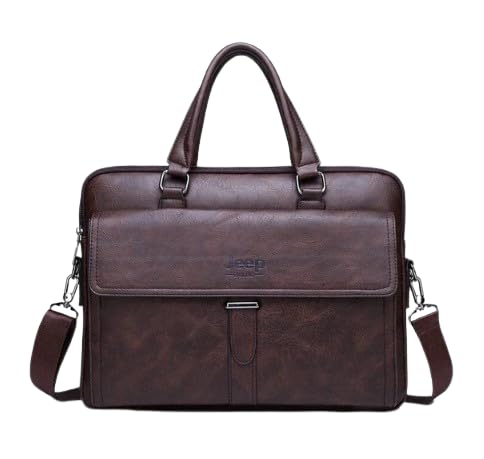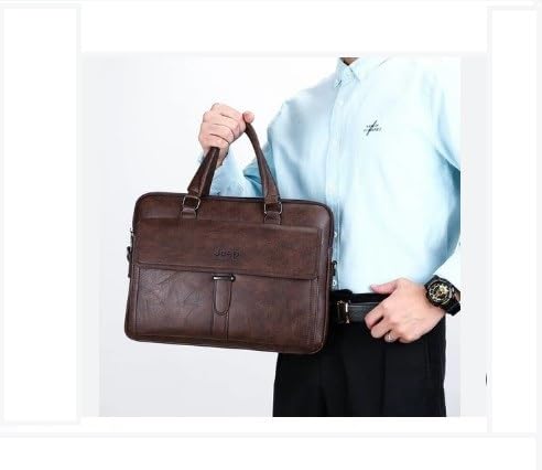Generic - شنطة يد و كتف من الجلد - تسع لاب توب 15.6 انش - بحزام قابل للتعديل - لون بنى غامق