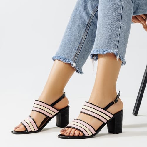 Life Stylish - صندل جلد بكعب واشرطة ملونة - SN-520