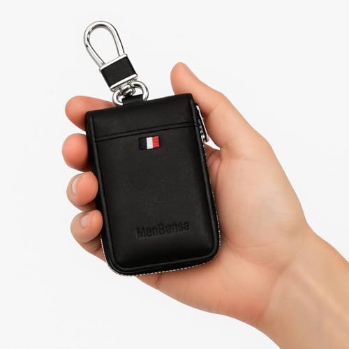 Generic - محفظة جلدية للمفاتيح بتصميم العلم الفرنسي، حامل بطاقات بسحاب مع مشبك سلسلة مفاتيح معدني