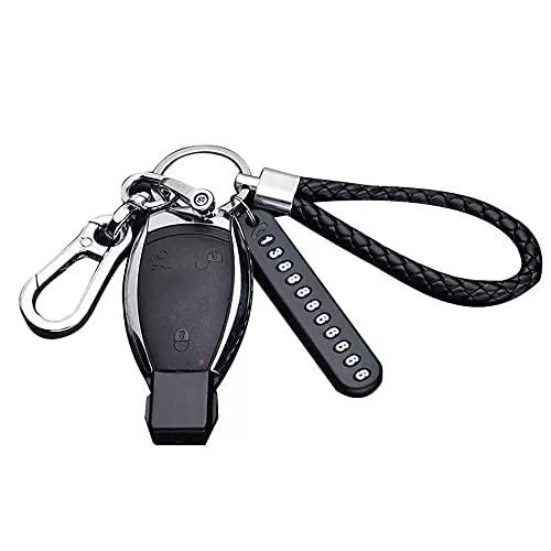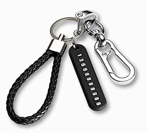 Other - مادلية مفاتيح جلد بتعليقة لاضافة رقم تلفون في حالة الضياع، اسود