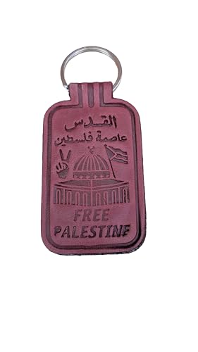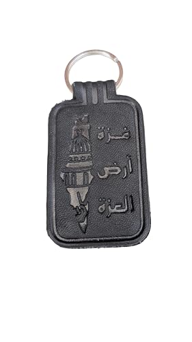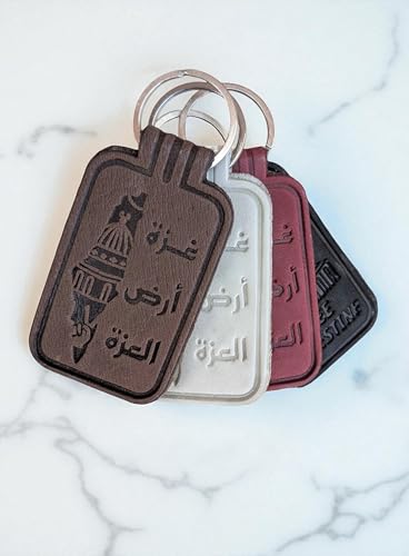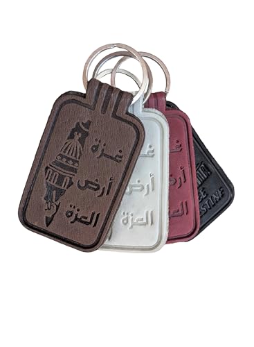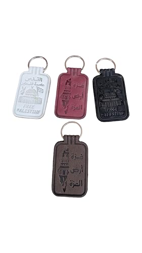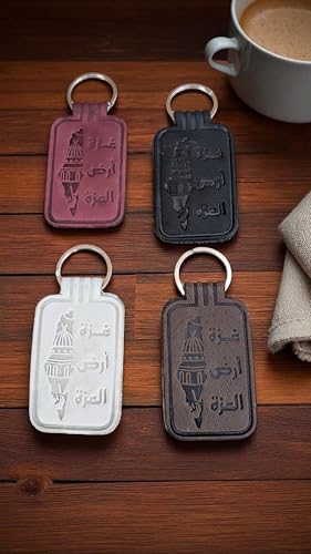 Generic - ميدالية مفاتيح جلد بشعار مطبوع فلسطين وغزة ارض العزة . وشعار القدس عاصمة فلسطين | 4 قطع | متعدد الالوان
