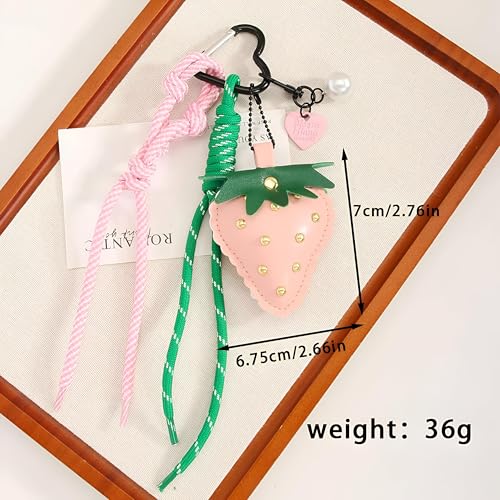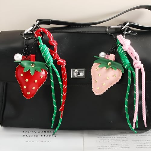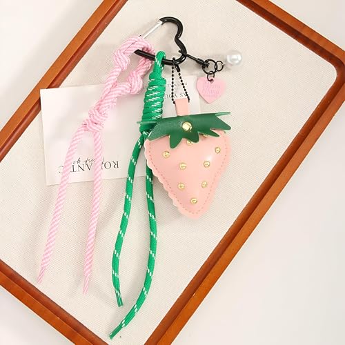 Generic - سلسلة مفاتيح جلد - سلسلة مفاتيح جلد فاخرة تتميز بحلية فراولة، مصممة للمحافظ والحقائب، ملحق حبل قوي، نمط مستوحى من واي 2 كيه للنساء، اكسسوار يومي لطيف